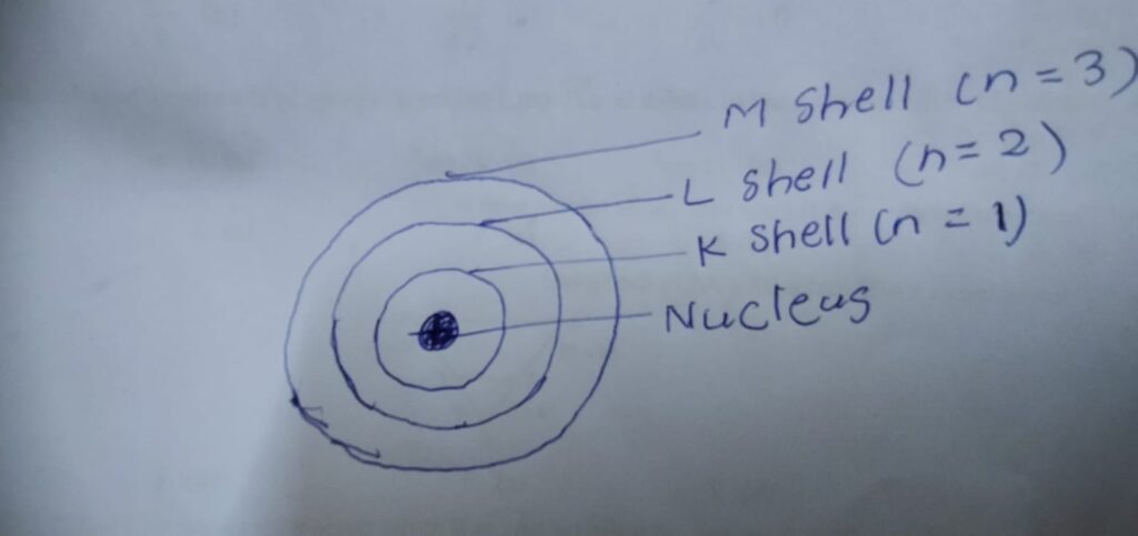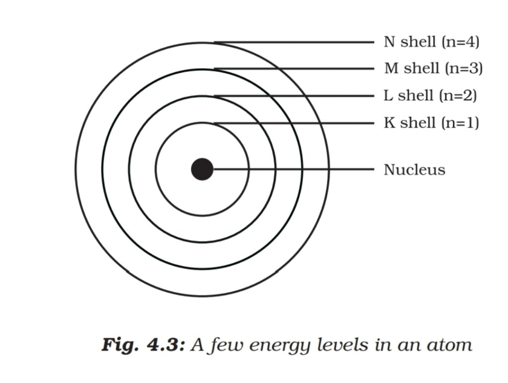 These orbits or shells are called energy levels. The orbits or shells are represented by block letters K, L, M, N,…or by numbers n=1,2,3,4….