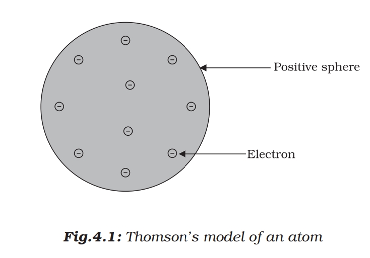 This model is also called plum pudding model. According to this model (i) atom is positively charged sphere in which electrons are embedded. (ii) the magnitude of positive and negative charge are same so atom is electrically neutral.