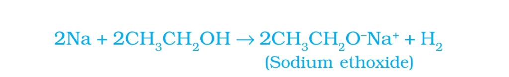 - Reaction with sodium: Sodium react with ethanol to form sodium ethoxide and hydrogen gas.