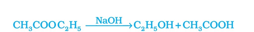 2. Saponification Reaction: Esters react in the presence of an acid or base to give alcohol and carboxylic acids. It is used in the preparation of soap. So this Reaction is called Saponification Reaction.