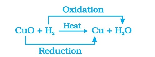 - Reduction of CuO into Cu: when hydrogen gas is passed over this heated material (CuO), the black coating on the surface turns brown as the reverse reaction takes place and copper is obtained. CuO+H2——–heat—————–>Cu+ H2O
