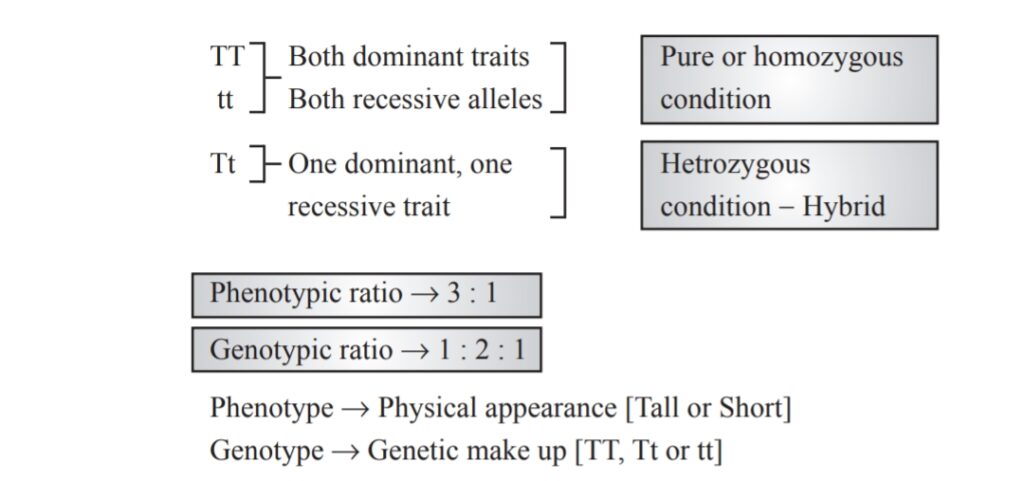 - Law of dominance: In a heterozygous organism, the dominant allele’s characteristics are expressed over the recessive allele’s.